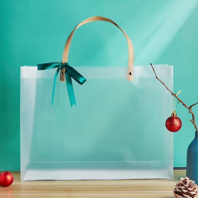 Sac Cadeau Avec Poignées Sac En Plastique Blanc Givré Réutilisable Pour Cadeau