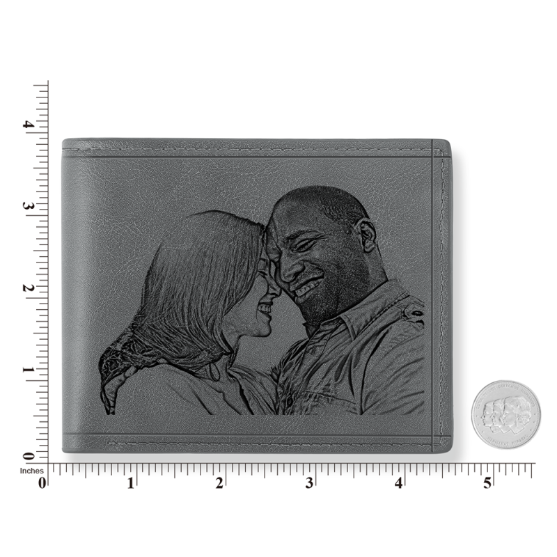 Portafoglio da uomo con foto incisa personalizzata in pelle grigia