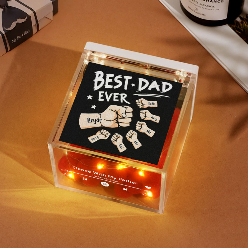 The Best Dad Ever Fist Bump Custom Mini Vinyl Record Player Automatic Music Player Personalized Gifr For Pops On Father's Day