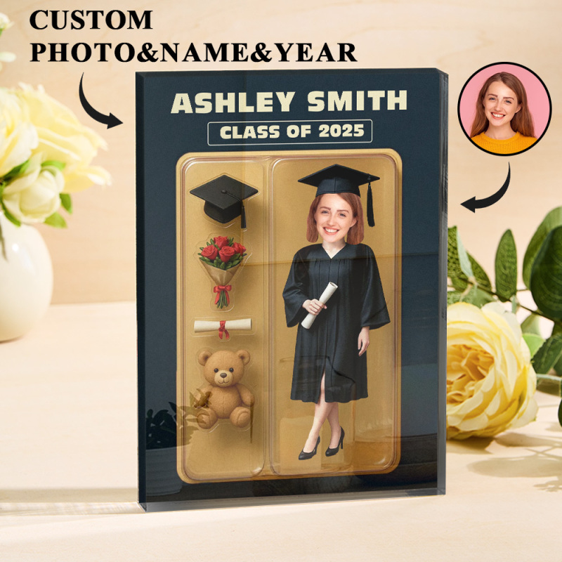 Personalized 3D Effect Graduation Action Figure Customizable Head Packaging Custom Acrylic Block Plaque Gift For Graduation